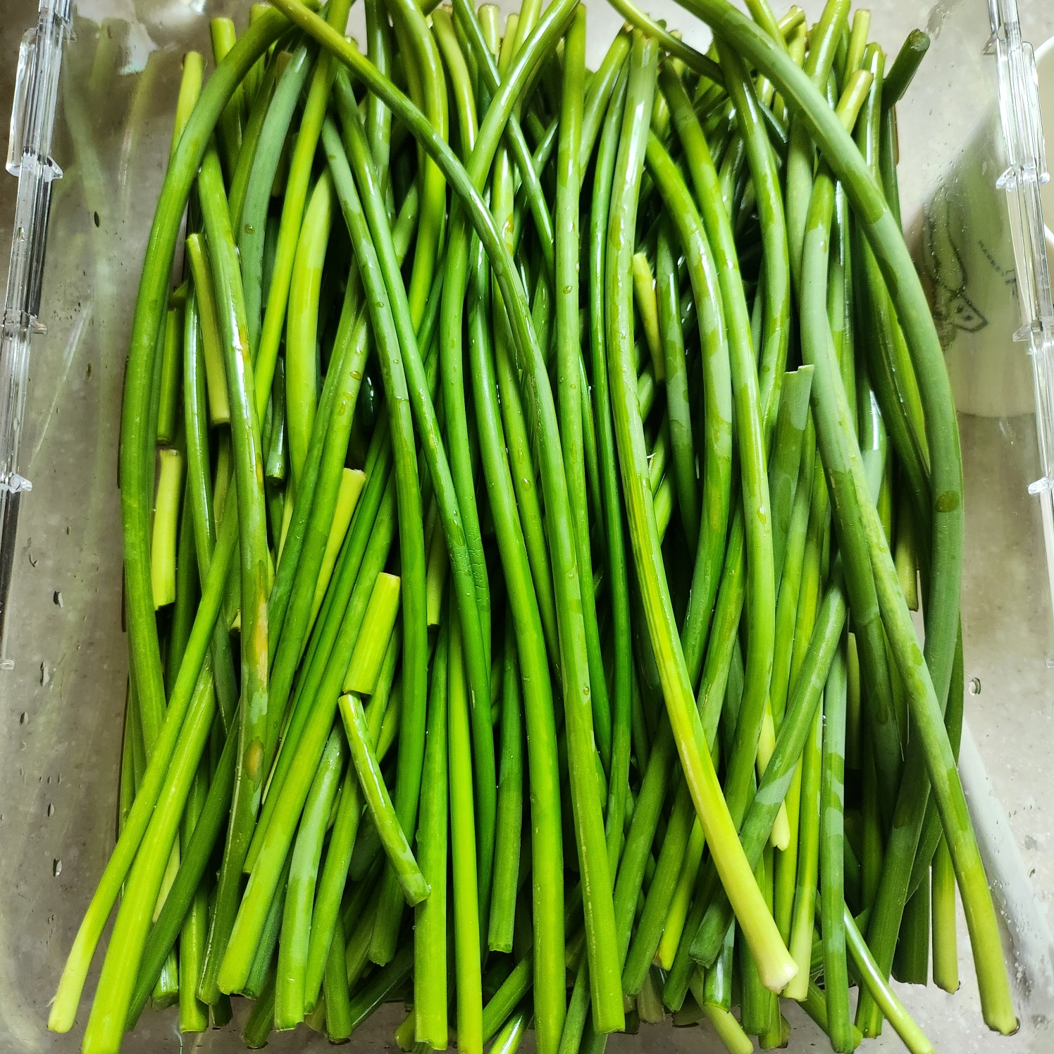자르지 않은 마늘종은 완성통에 통 사이즈에 맞게 잘라 차분하게 넣고 소스물을 넣어준다. 가끔 김밥 할 때 단무지만 넣은 것보다 살짝 맵싹 해서 괜찮아하는 신랑을 위해서 따로 보관한다...