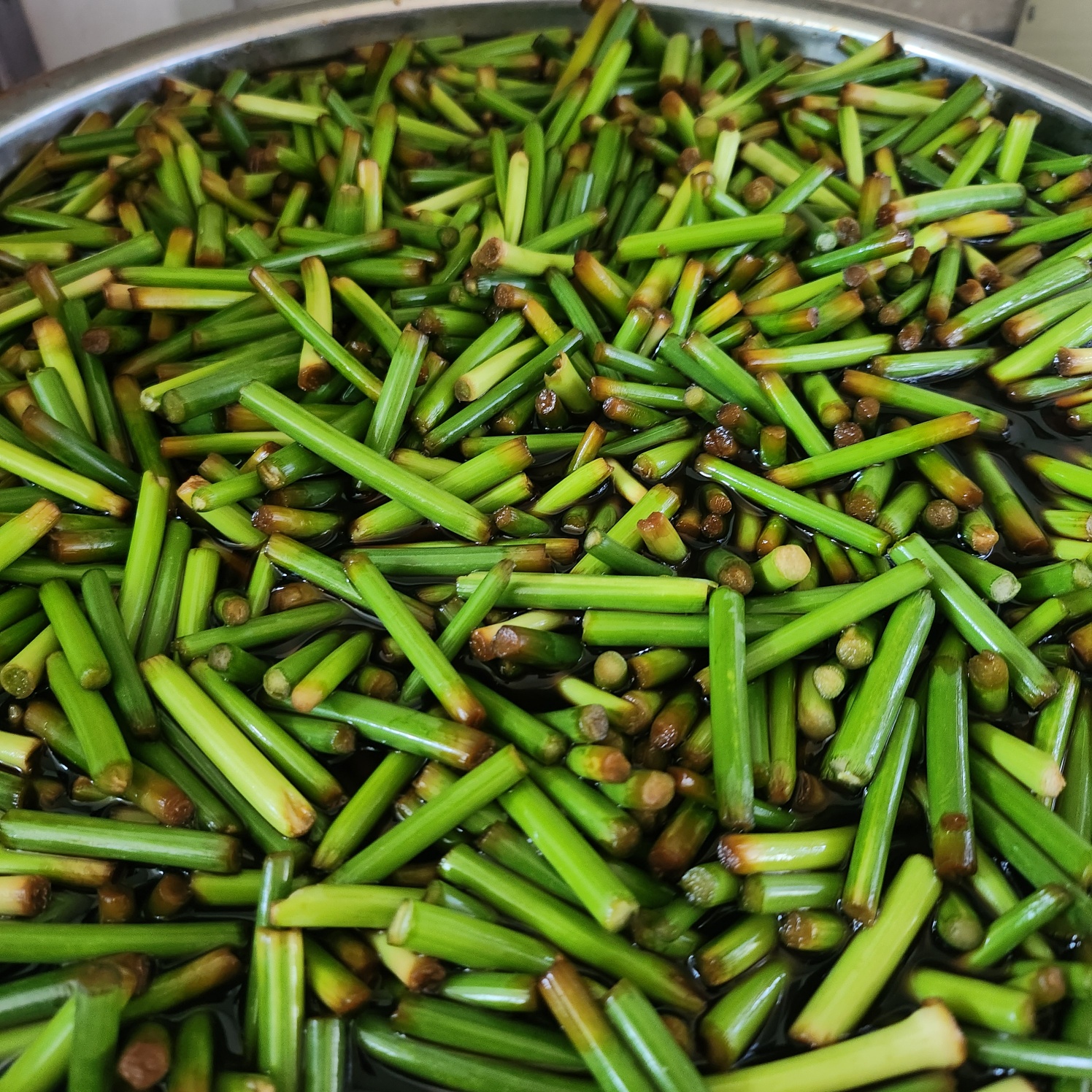 아래마디 부분에서 잘라도 된다. 혹 손질하고 씻을때 단면에 물에 닿지 말라고 윗부분을 먼저 자랐다. 씻고 나서 아랫부분을 잘라줘도 된다.